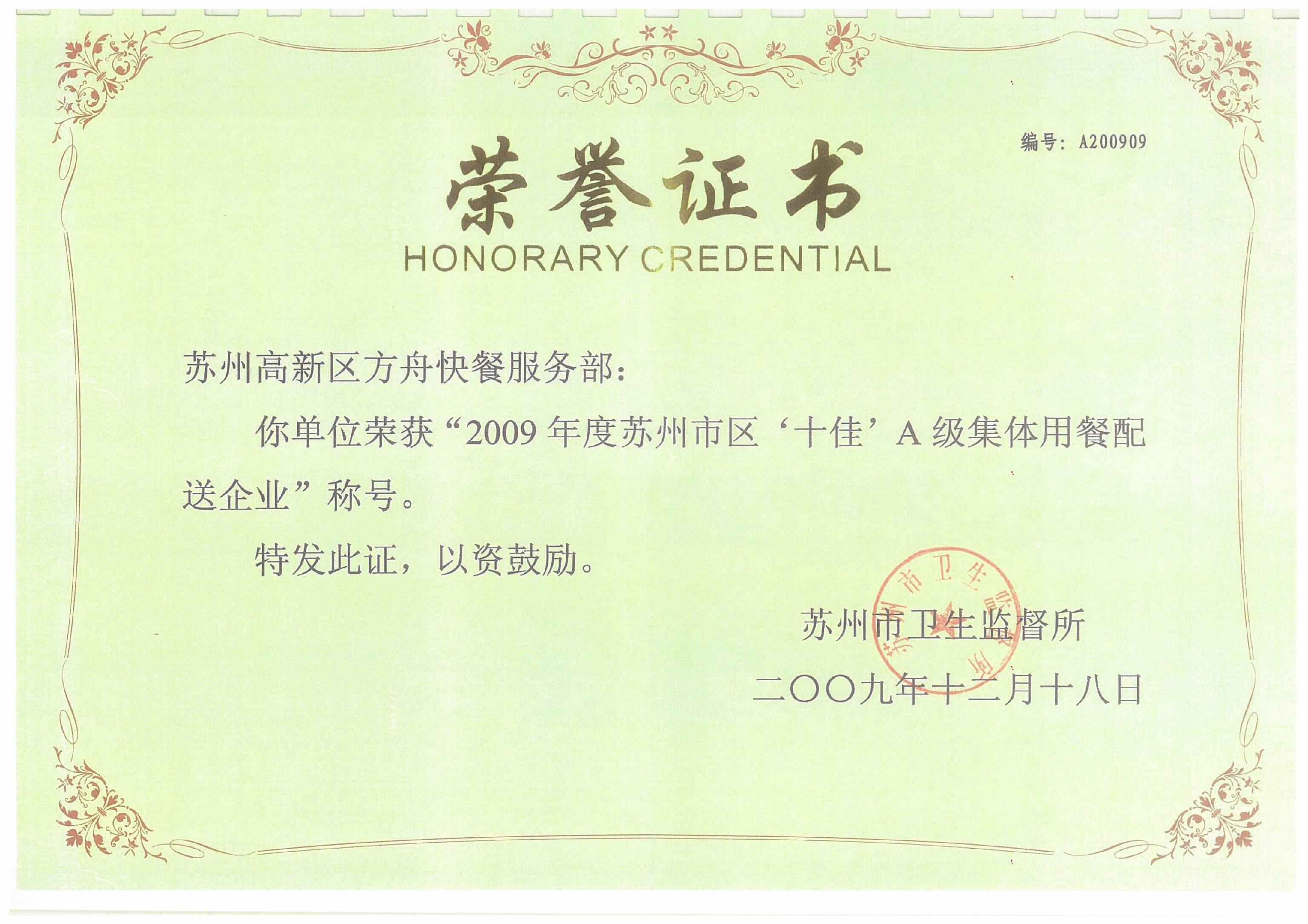 2009年證書